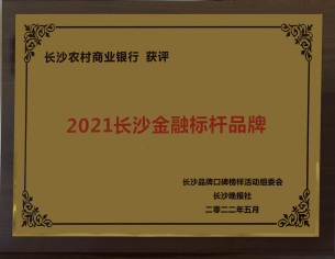 5月10日,长沙农商银行在2022长沙品牌建设论坛上被授予“长沙金融标杆品牌”奖项。据悉,该活动由湖南省长沙市发展和改革委员会、长沙市工业和信息化局、长沙市商务局、长沙市市场监督管理局和长沙市人民政府金融工作办公室指导,长沙晚报社主办。