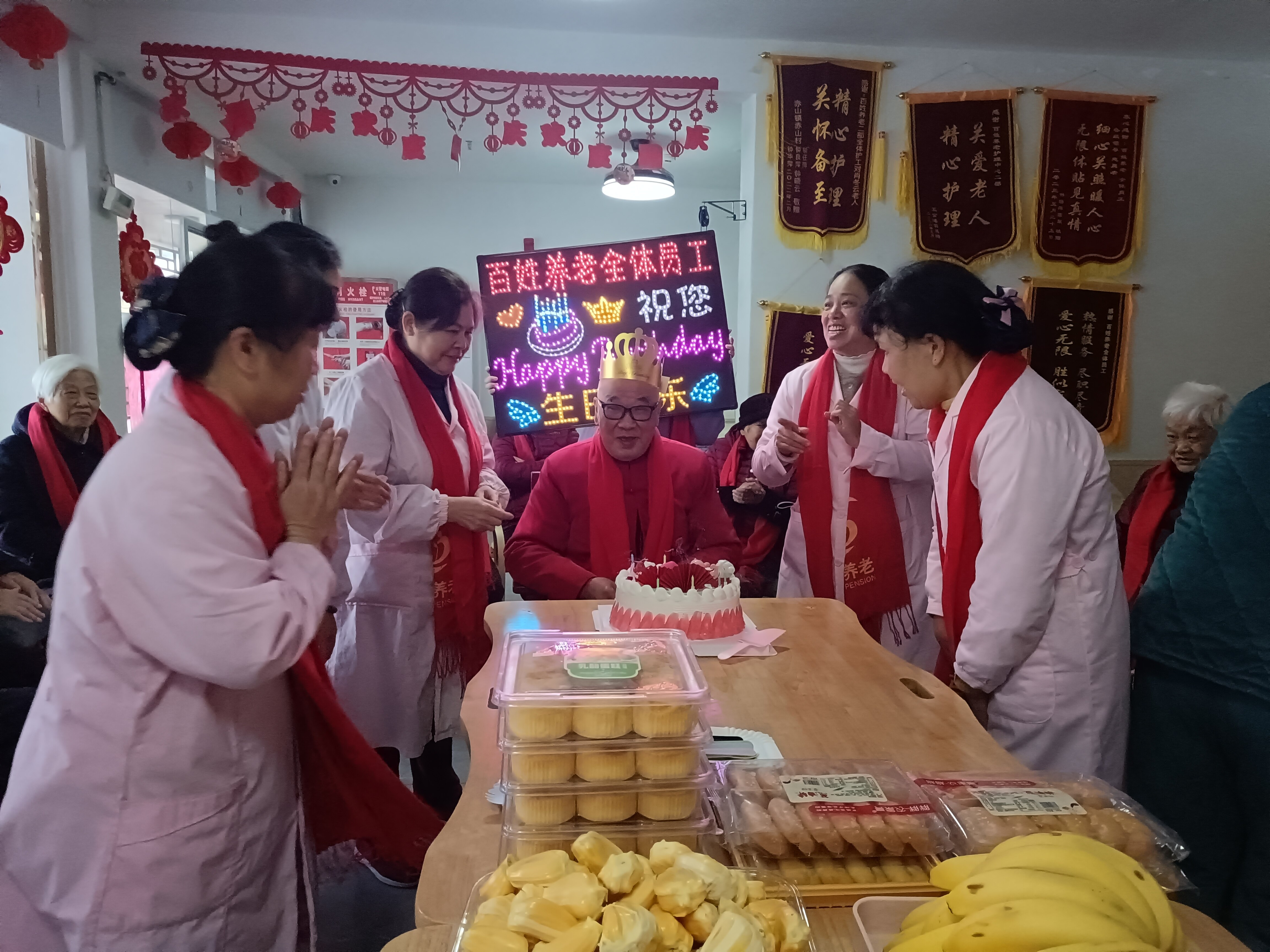 写满吉祥话的春联、大红的福字、五彩的灯笼……蛇年新春到来之际,江西省萍乡市凤凰街道社区综合养老服务中心到处张灯结彩,年味十足。