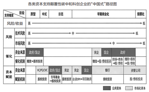 由于颠覆性碳中和技术创新具有技术外溢与碳减排的“双重”正外部性,正统经济学对于以公共资本支持其发展提供了充分理据。虽然理据存在,但公共资本来自财政资金或国有资本,规模有限,如何对其高效利用以撬动更多市场化资本进场,是推动碳中和技术创新及其产业化发展的重要议题。