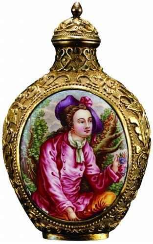 鼻烟壶,顾名思义就是盛鼻烟的容器,小可手握,便于携带,它是中西文化融合的结晶。鼻烟虽是数百年前来自美洲的舶来品,但鼻烟盒渐渐东方化,产生了鼻烟壶。明朝万历九年,意大利传教士利马窦来中国传教,把鼻烟带到了中国,当作提神醒脑活血防疫的药品。鼻烟输入中国后,开始只在上层社会中流行,后来一般的市民、商贾中也有人染上了闻鼻烟的习惯。鼻烟最早传入中国时,并无特制容器,自清康熙年间,宫廷造办处开始制造玻璃、珐琅等材质鼻烟壶,中国工匠的才艺得以淋漓尽致发挥。鼻烟壶作为一种精美艺术品流传下来且长盛不衰,被誉为“集各国多种工艺之大成的袖珍艺术品”,被收藏爱好者视为珍贵文玩,在海内外均享有盛誉。