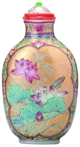 玻璃胎画珐琅开光莲花鼻烟壶