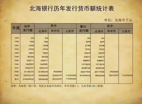 北海银行历年发行货币额统计表