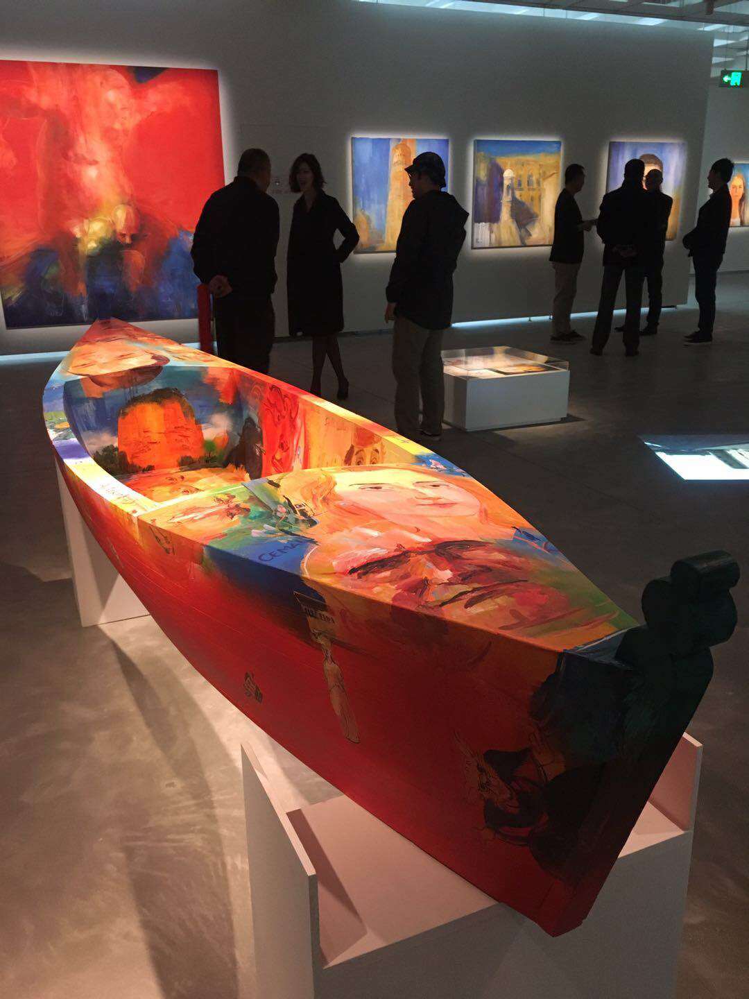 这种向心灵深处的探求,同样体现在其他题材的创作中,他将行走创作中得到的形象,绘制在两艘船身上,上面的面孔都来自其创作实践。而船底则绘有他行走在丝绸之路上的线路图。这代表着他实际行走的路线,也体现了其心路历程。