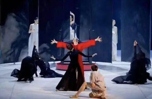 悬挂在舞台中央宽大的红袍是全剧最核心的道具,既是唐寅穷其一生追求的那片浮云,也是他永远无法弥合的伤痛。第一场中,一个几乎赤身裸体的男子深陷囹圄,挣扎于铁窗之下,那个青年人就是曾经独占鳌头的唐寅“唐解元”,他不幸卷入了一场“科场舞弊案”,不仅被革去功名,还要遭受牢狱之灾。悬挂在空中的那件红袍,如同掌控唐寅人生悲剧的宿命。如此沉重的话题,用舞蹈语汇来演绎是相当有难度的,这是本场中极大胆的舞美设计,演员写意式的表演也基本到位。只是剧中唐寅父母形象的出现让观众们感觉多余,使得舞台上显得有些杂乱,其实“学而优则仕”早就是中国社会的共识,高悬的官袍指代了整个中国古代科举制度。