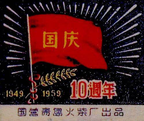 新中国最早的国庆专题火花于1959年“国庆十周年时出品,当时有武汉、苏州、青岛、广州、柳州、吉林、山东等十几家火柴厂出品了纪念火花,图案大都以天安门、工农业建设成就及礼花、红旗、彩球、宫灯、舞龙、民族歌舞等喜庆场面为主。以后,在“国庆十一、十五、二十、二十一、二十三、二十五、三十、三十五、三十八、四十、五十周年”时均有纪念火花问世,包括贴标花、卡标花、卷标花、独幅花、拼图花等;设计手法多种多样,有绘画、剪纸、书法、篆刻、摄影等;选题内容更是丰富多彩,除了常见的北京天安门、祖国建设新成就、喜庆等场面外,还有开国元勋、风光名胜、革命圣地、国庆诗词、吉祥年画、书法篆刻等,真实地反映了新中国的新气象。如武汉火柴厂出品的《国庆10周年》火花,全套2枚,以天安门放飞彩色气球、武汉长江大桥飘扬红旗为图;而大理火柴厂1999年出品的一套《国庆50周年》纪念火花,整套竟有50枚之多,恰与“国庆50周年”主题相对应,是迄今为止我国出品枚数最多的一套国庆专题火花。它采用摄影构图,按新中国发展的时间顺序排列,犹如一部反映新中国前进步伐的写真集,这套“国庆”专题火花大套票具有较高收藏价值。